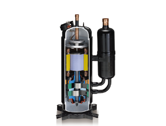 Tehokas suuren kapasiteetin DC-kaksoiskiertomäntäkompressori tarjoaa erinomaisia välitason ominaisuuksia.