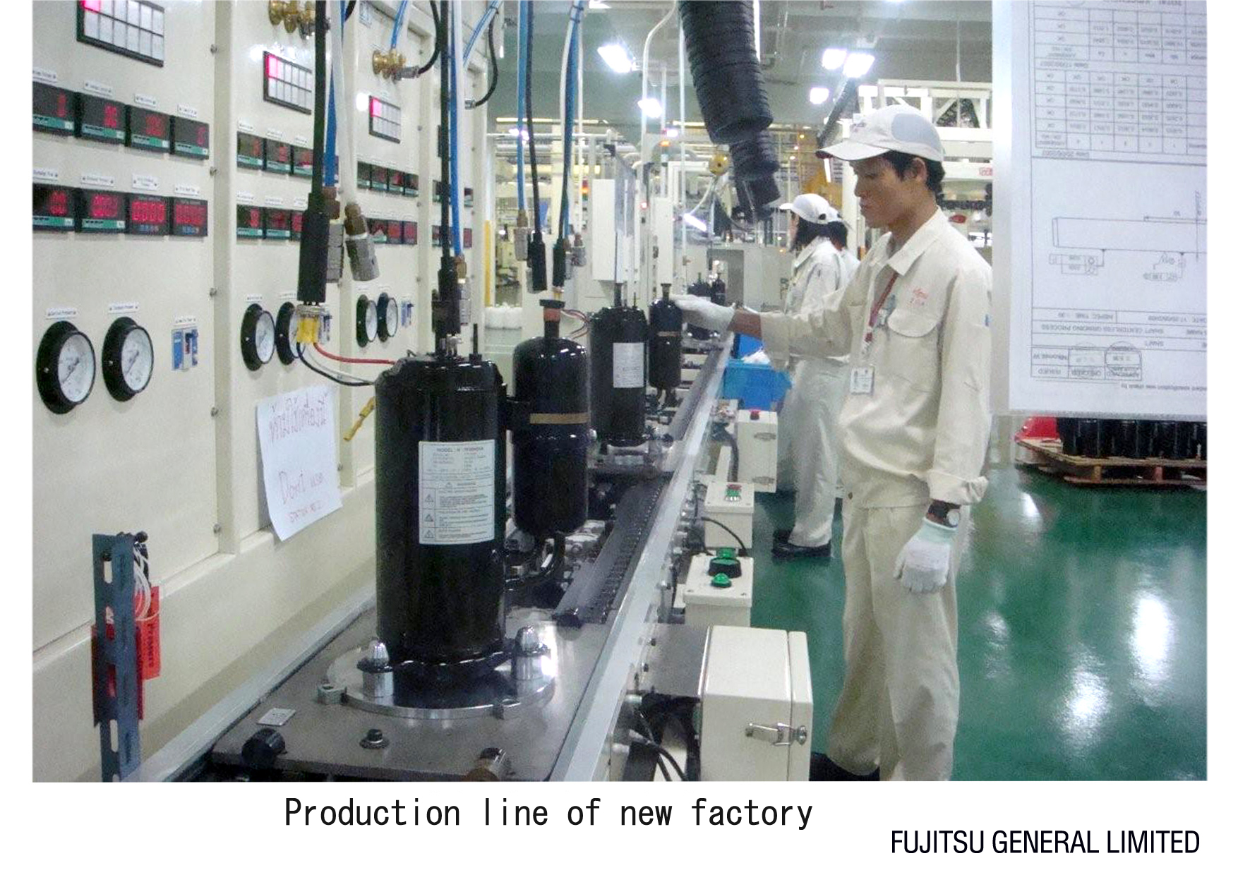 FGA will further improve the production efficiency as a factory of key components for middle and large size air conditioners by producing high efficiency compressors in addition to the conventional fan motors, and we will aim to further expand the business of middle and large size air conditioners.