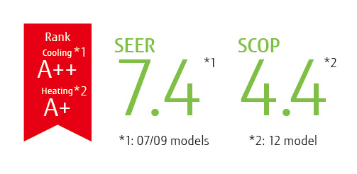 Χάρη στη χρήση του εναλλάκτη θερμότητας Lambda υψηλής απόδοσης, του μεγάλου ανεμιστήρα εγκάρσιας ροής και του ψυκτικού μέσου R32 επιτυγχάνεται εξαιρετική ενεργειακή απόδοση.