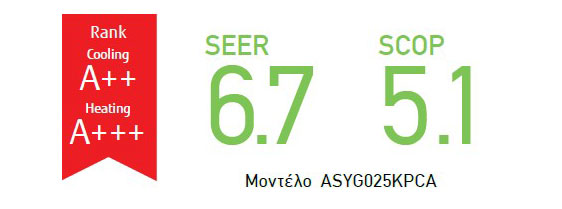 Χάρη στη χρήση του εναλλάκτη θερμότητας Lambda υψηλής απόδοσης, του μεγάλου ανεμιστήρα εγκάρσιας ροής και του ψυκτικού μέσου R32 επιτυγχάνεται εξαιρετική ενεργειακή απόδοση.