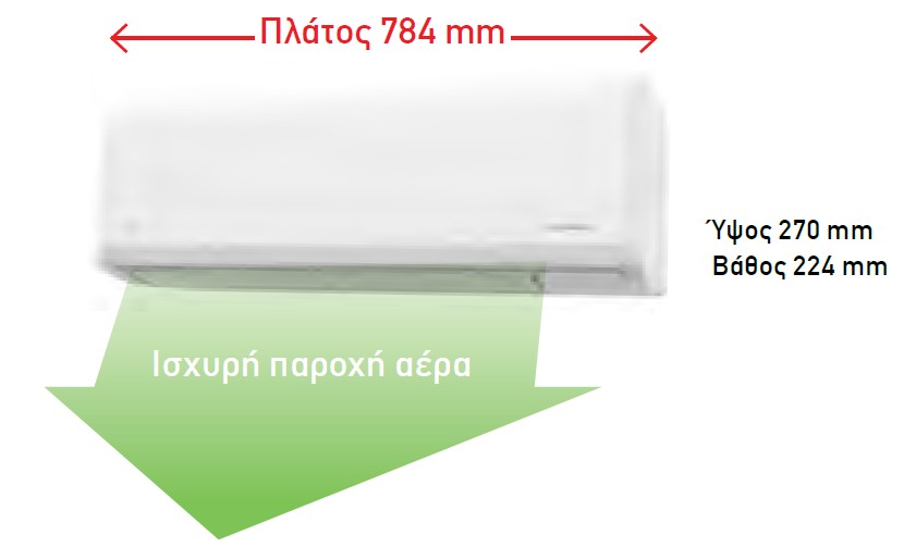 Η λεπτή και κομψή σχεδίαση αυτής της μονάδας εσωτερικού χώρου επιτυγχάνεται με τη χρήση ενός εναλλάκτη θερμότητας υψηλής πυκνότητας πολλαπλών διαδρομών και ενός ανεμιστήρα υψηλής απόδοσης.