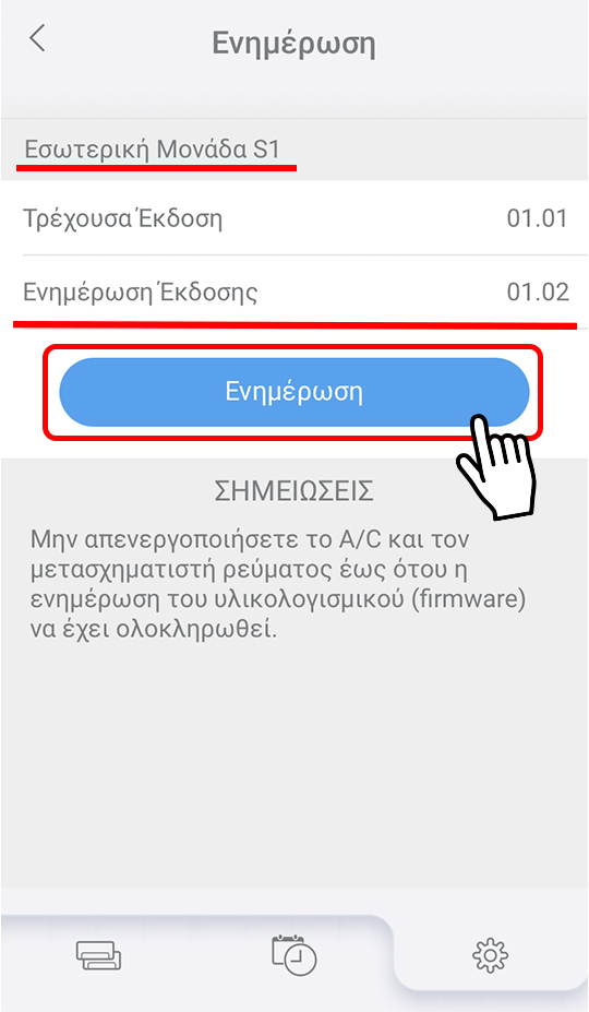 Μην απενεργοποιήσετε το κλιματιστικό ενώ εκτελείται η ενημέρωση του υλικολογισμικού.