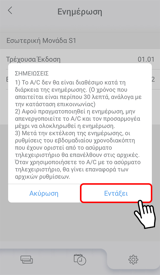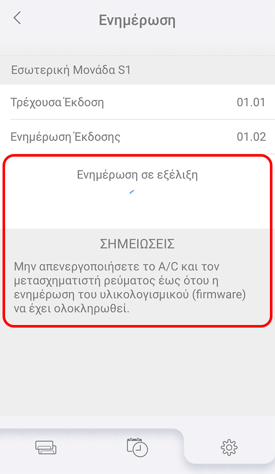 - Το κλιματιστικό δεν μπορεί να χρησιμοποιηθεί ενώ εκτελείται η ενημέρωση.
