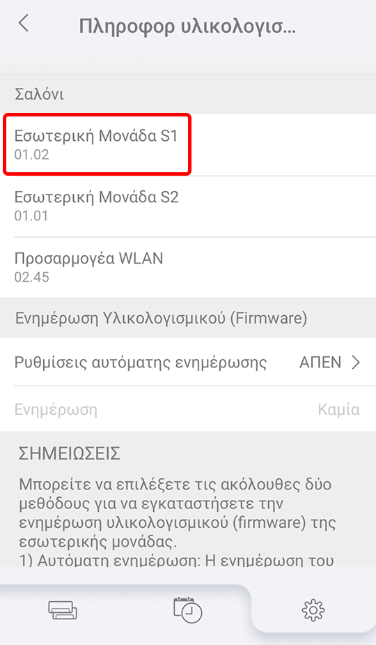 - Το υλικολογισμικό της μονάδας εσωτερικού χώρου S1 θα ενημερωθεί.
