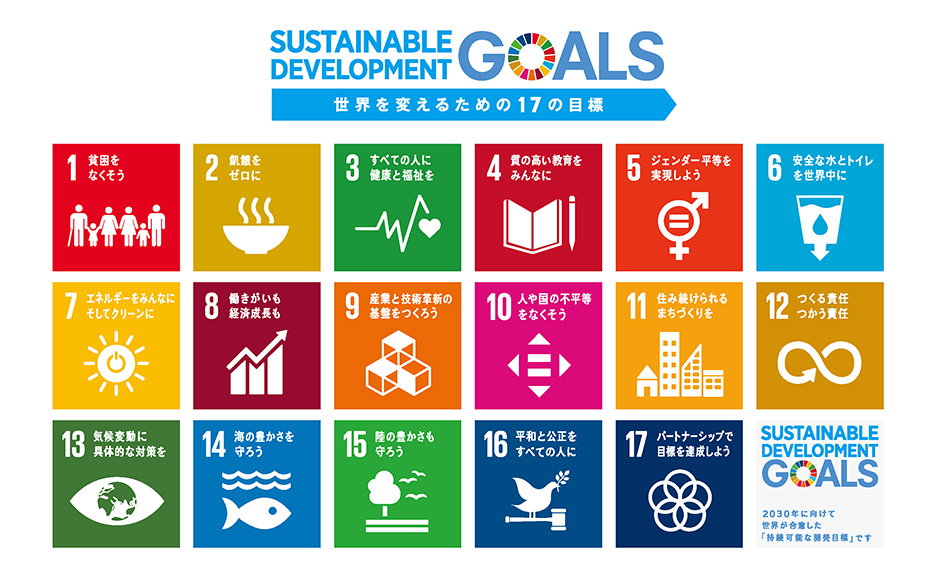 2015年9月に国連本部で開催された「国連持続可能な開発サミット」において、2016年から2030年までの長期的な開発の指針として、「持続可能な開発のための2030アジェンダ」が採択されました。この文書の中核を成す「持続可能な開発目標」がSDGsです。