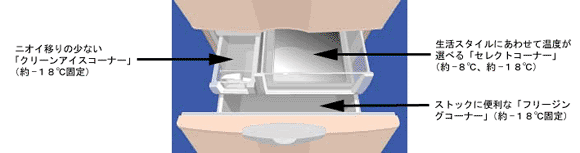 - 特長1 : 当社独自の一室切り替え「セレクトフリーザー」