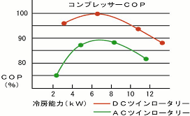 高効率DCツインロータリーコンプレッサー搭載と、インバーター制御回路の改善により、業界トップ(注1)の高効率化を実現
