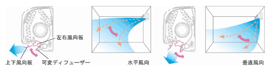1 : 当社独自の可変ディフューザーと上下・左右自動風向機能搭載。
