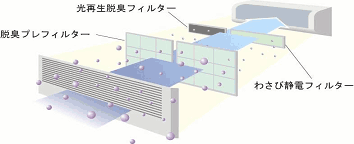 2 : 光再生脱臭フィルター、わさび静電フィルターを搭載。(大型壁掛けインバーターはオプション対応)