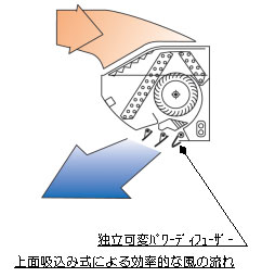「独立可変大型パワーデュフューザー」による「強力真下気流」と「健康水平気流」