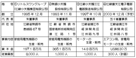 - 富士通ゼネラル 50%、江蘇小天鵝三江電器製造有限公司 50%
