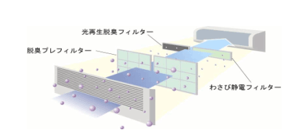 - 光再生脱臭フィルター、わさび静電フィルターの搭載による空気清浄効果の向上