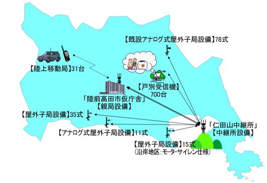 陸前高田市デジタル防災無線システムのネットワーク図