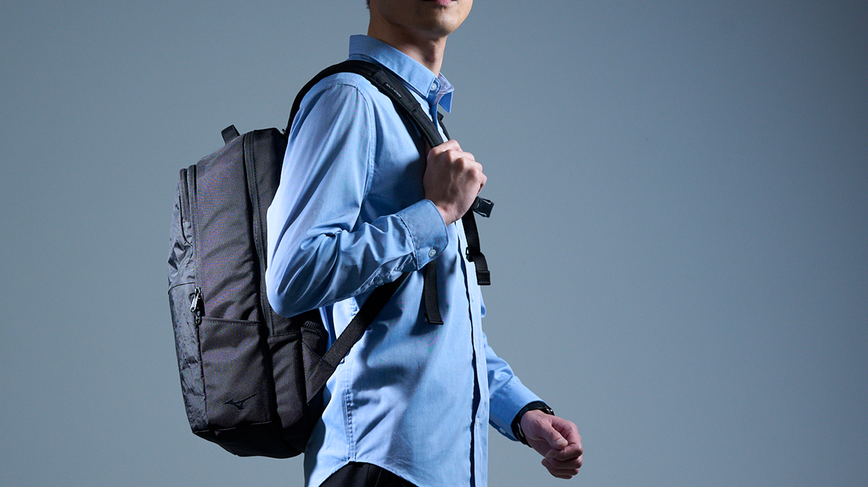 オフィスへの出社が戻りつつある今夏、長年エアコン事業を展開してきた当社が、ビジネスパーソンのコンディションを支えるバックパックを開発しました。「コンディショニングバックパック」は、「蓄冷熱交換技術」を利用した独自の冷却システムで背中を冷やし、夏の通勤時の汗や汗による不快感を軽減(注1)するものです。総合スポーツ用品メーカー ミズノ株式会社(以下、ミズノ)協力のもと、冷却効果とビジネス向けバックパックに求められる機能性・デザイン性の両立を実現しました。