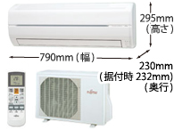 - 省エネ基準値は省エネ法に定められた2010年度基準(寸法規定)に対し、25型において通年エネルギー消費効率(APF)5.8。