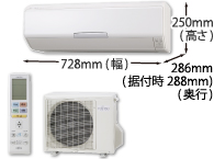 - 室内機の縦寸法(高さ25cm)および横寸法(幅72.8cm)ともに最小サイズ(2009年1月14日現在 当社調べ)