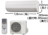 - 室内機の縦寸法(高さ25cm)および横寸法(幅72.8cm)ともに最小サイズ(2009年1月14日現在 当社調べ)