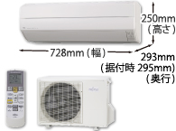 - 室内機の縦寸法(高さ25cm)および横寸法(幅72.8cm)ともに最小サイズ(2009年1月14日現在 当社調べ)