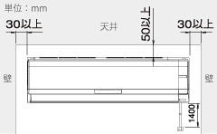 | 外形寸法 | 室内機 : 高さ×幅×奥行(据付後) | 250×890×297(299)mm | |
