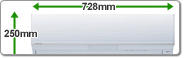 (注1:家庭用ルームエアコン室内機の高さと幅において 2013年1月17日現在 高さ25cm、幅72.8cm)