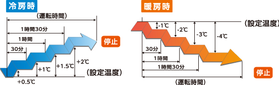 ※ 控えめに設定すると、暖まり(冷え)がおそくなる場合があります。