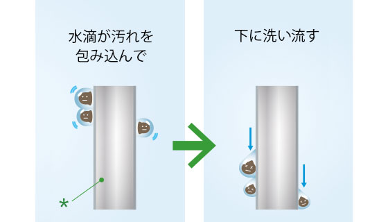 冷房時と除湿時に発生した水で、熱交換器を自動洗浄します。(ホコリや油汚れの多い環境でのご使用時には、熱交換器の洗浄が必要となる場合があります。
