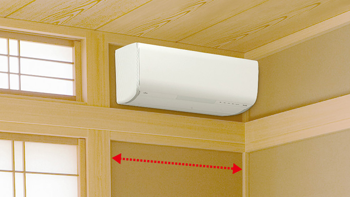 冷暖房気流が左右ワイドに、お部屋のすみずみまで届く。