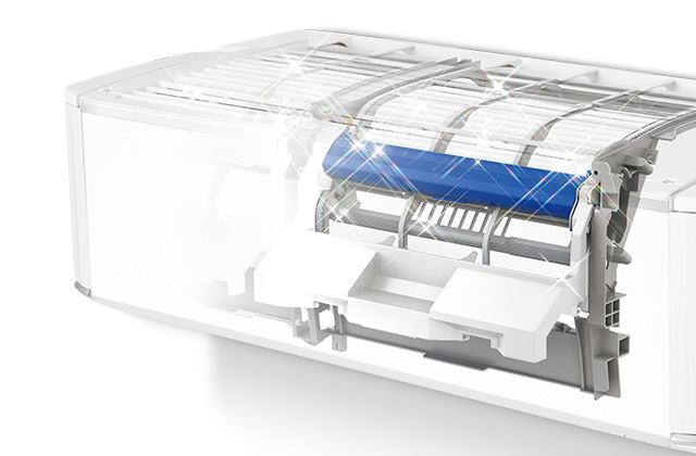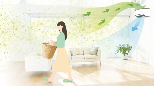 冷房・除湿運転停止後、送風および、弱温風による内部クリーン運転(乾燥運転)でエアコン内部についた水分を取り除きます。エアコン内部のカビを抑制(注4)して、ニオイなどの発生を抑えます。