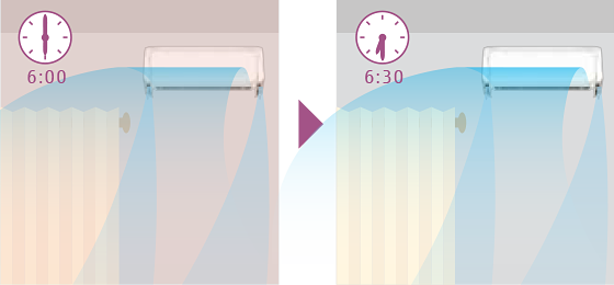 設定した時刻にお部屋が快適になるように、夏は暑いほど、冬は寒いほど早めに運転を開始します。