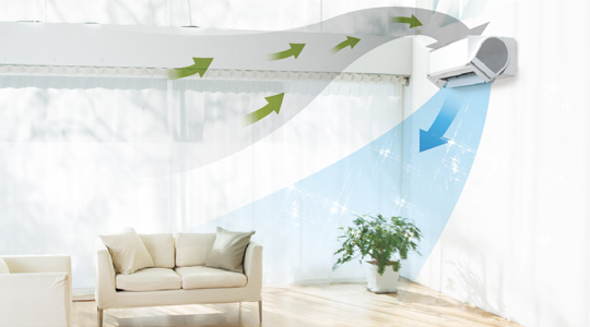 - 家庭用エアコンにおいて。熱交換器を55℃以上に加熱し、湿熱効果で除菌を行う方式。2017年11月18日発売(当社調べ)