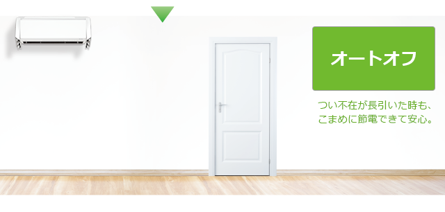 さらに、人の不在が約1時間または約3時間続くと、自動で運転を停止。 お出かけ前の消し忘れも防止できます。(オートオンオフモードの場合は30分後)