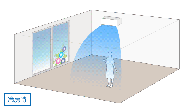 エアコンをコーナーに設置しても、反対側の隅まで快適。