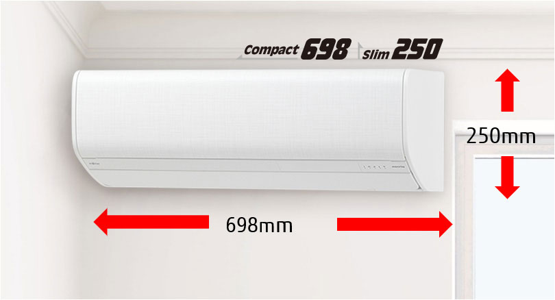 これまでには難しかった狭い窓横の壁にも設置できます。また、窓上のスペースにも設置可能なスリムサイズです。