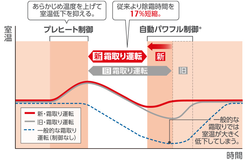 霜取り中は暖房運転が止まり、肌寒さを感じてしまう