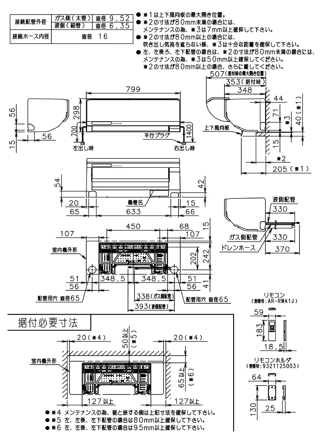 | 外形寸法 | 室内機 | 高さ | 298mm |