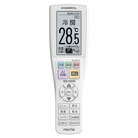- 「ダブルAI」「I-PAM」「あったかアップ」「ゴク暖」「オーダーメイド快適」「DUAL BLASTER」「デュアルブラスター」「nocria」「ノクリア」「ハイブリッド気流」「パワーディフューザー」「不在ECO」「さらさら冷房」「ひかえめ」「ウイルカット・フィルター」「ハイドロフィリック熱交換器」は、株式会社ゼネラルの商標または登録商標です。