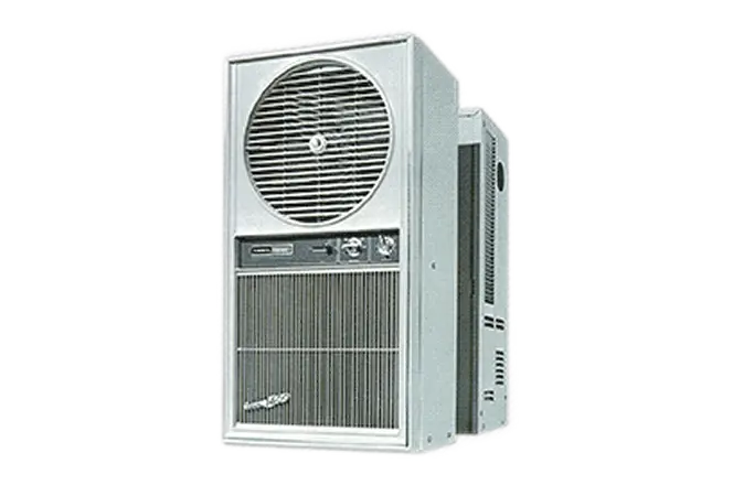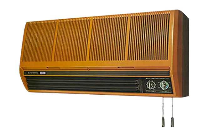 当時のエアコンは、冷房時、風を前にしか吹き出すことができませんでした。そこで、エアコンの下部に吹き出し口を設けた「冷気下吹出し方式」スプリット形エアコンを発売。
