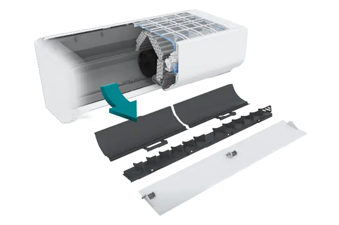 「自分でお手入れしたい」という多くのお客様の声にお応えして、エアコン奥のホコリや汚れがたまりやすいパーツを"簡単取り外し"仕様にしました。