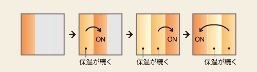さまざまな生活シーンに合わせて、必要な場所だけを暖められます(暖房面積を制限)。