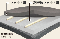 生地を重ねた構造が床面へのムダな放熱を抑制。クッション性にも優れています。
