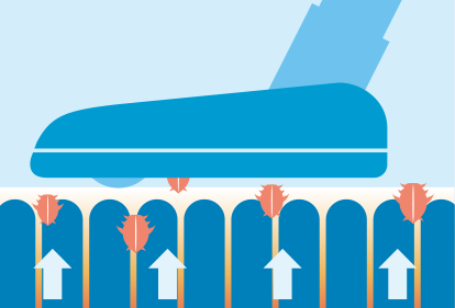 ダニが気になる方にうれしい機能。奥に入り込んだダニを熱の力で浮き出させ、掃除機で吸い込みやすくします。