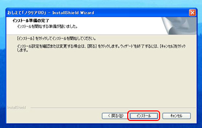 - 『インストール準備の完了』と表示されますので、インストールを開始する場合は【インストール】をクリックしてください。