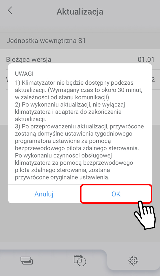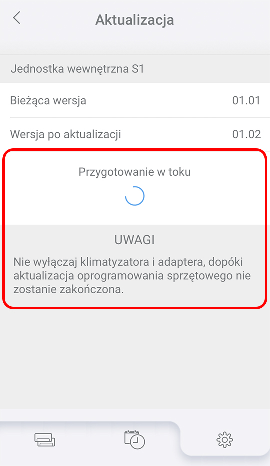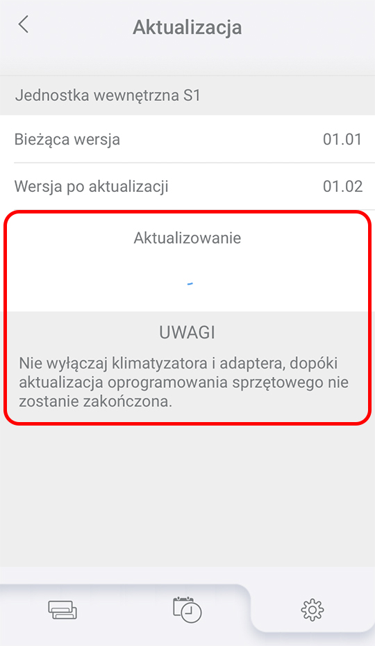- Podczas aktualizacji nie można korzystać z klimatyzatora.