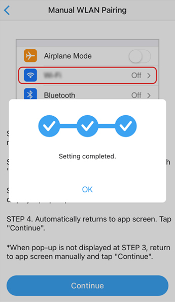 När du börjar ansluta en WLAN-adapter manuellt med din smartphone med iOS 14 eller surfplatta med iPad OS 14, visas ett meddelande på skärmen på din smartphone eller surfplatta enligt nedan.