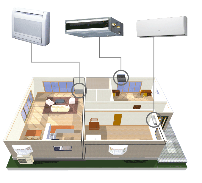 Multi-split systems can be installed in large residences and multi-storied buildings.
