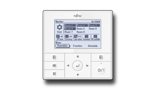 An optional Central Remote Controller is available for residential applications. All indoor units can be centrally controlled with an easy-to-use, intuitive interface. A variety of energy-saving options can be selected via the remote controller.