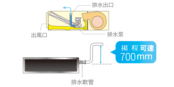 便於排水,可有効解決安裝場所排水不良的問題,也讓室內機的安裝位置有更多元的選擇。