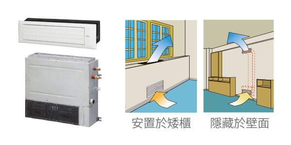 除一般水平安裝外,富士通的立放安裝設計,適用於,不便安裝於天花板或壁面之空間,満足各種空間需求,美化您的居家。