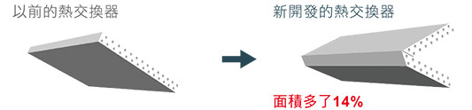ㄑ字型熱交換器體積更小,面積卻能多出14%