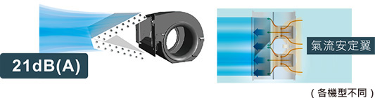 - 使用於迷你型內機可6段風速切換+自動,噪音值最低只有21dB(A)